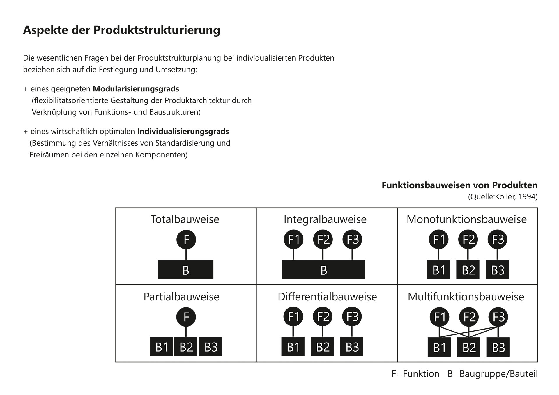 Um Produktvarianten möglichst wirtschaftlich zu gestalten, können Teile standardisiert und Werkzeuge wiederverwendet werden (Plattform/Module/Baukasten). Es geht darum Produkt- und Lebenszykluskosten zu senken, Varianten über deren gesamten Lebenszyklus handhaben zu können und gleichzeitig verbesserte Produkt- und Prozessqualität mit höherer Produktivität zu erreichen.