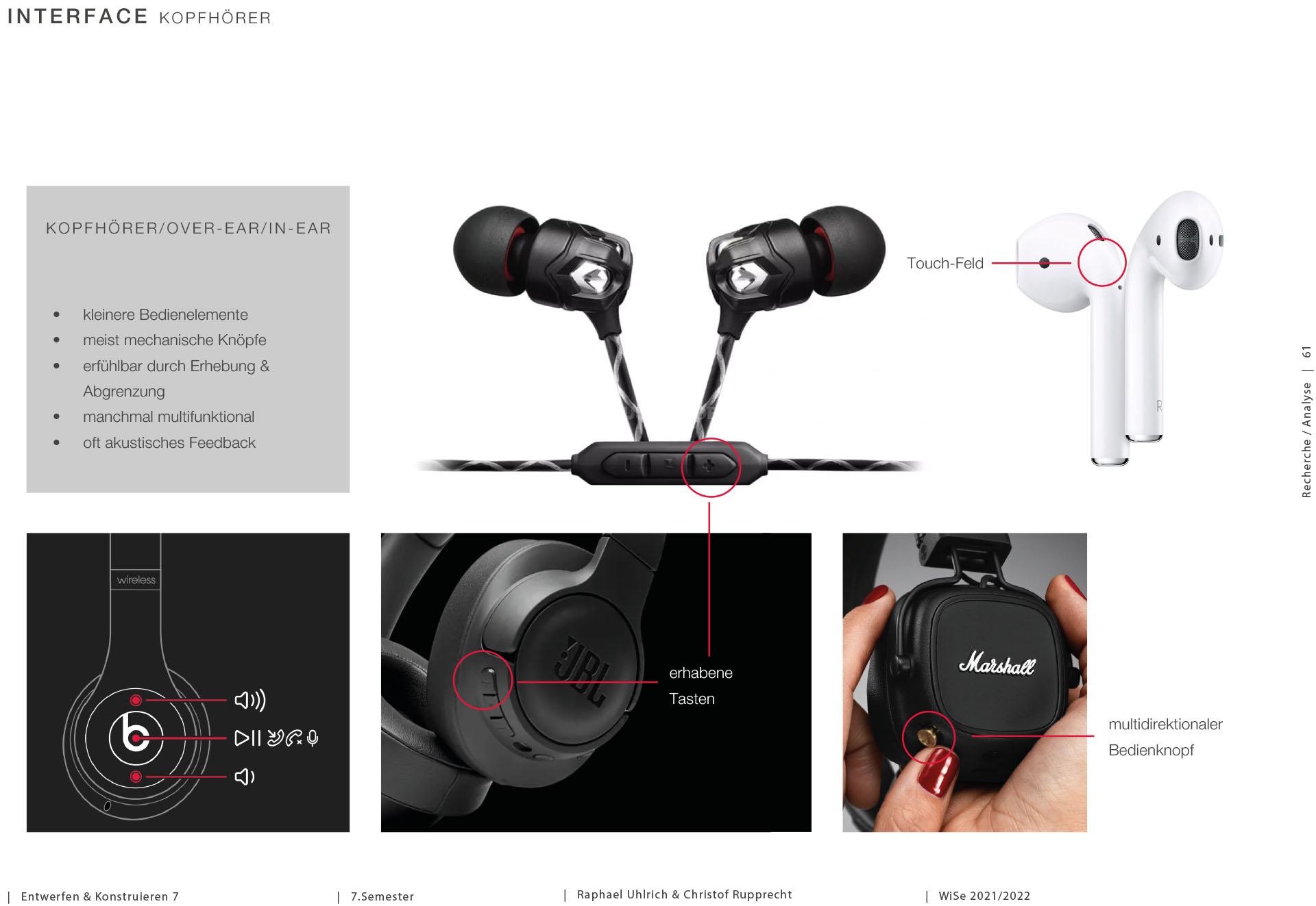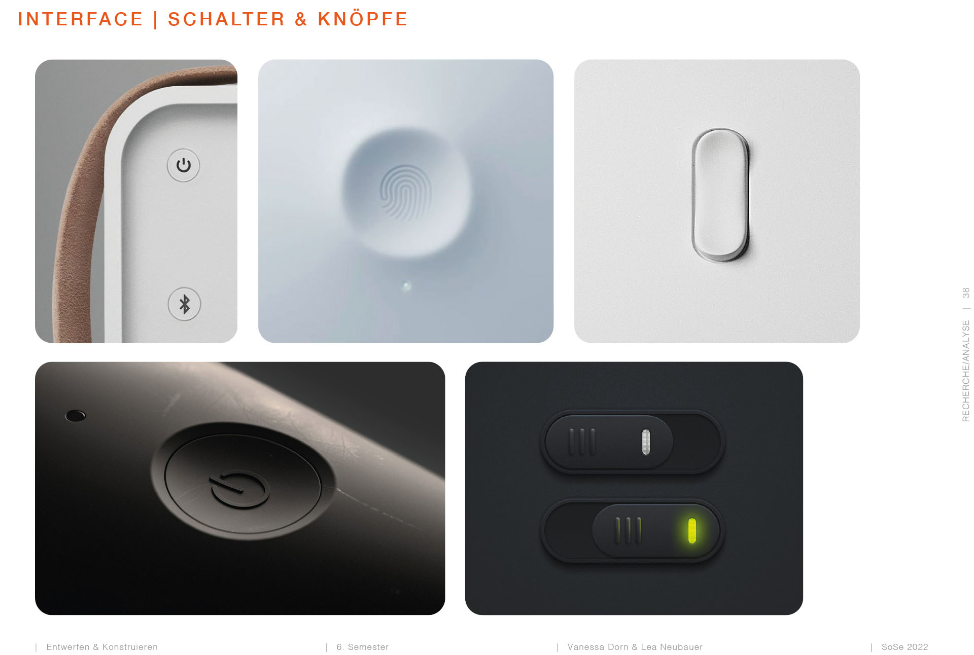 In der Gestaltung dient das Interface der technischen Kommunikation zwischen Produkt und Benutzer. Das Ziel ist es zu untersuchen, auf welche Art diese Kommunikation stattfinden kann, um die Bedienung möglichst intuitiv zu gestalten und gegebenen Umständen anzupassen.